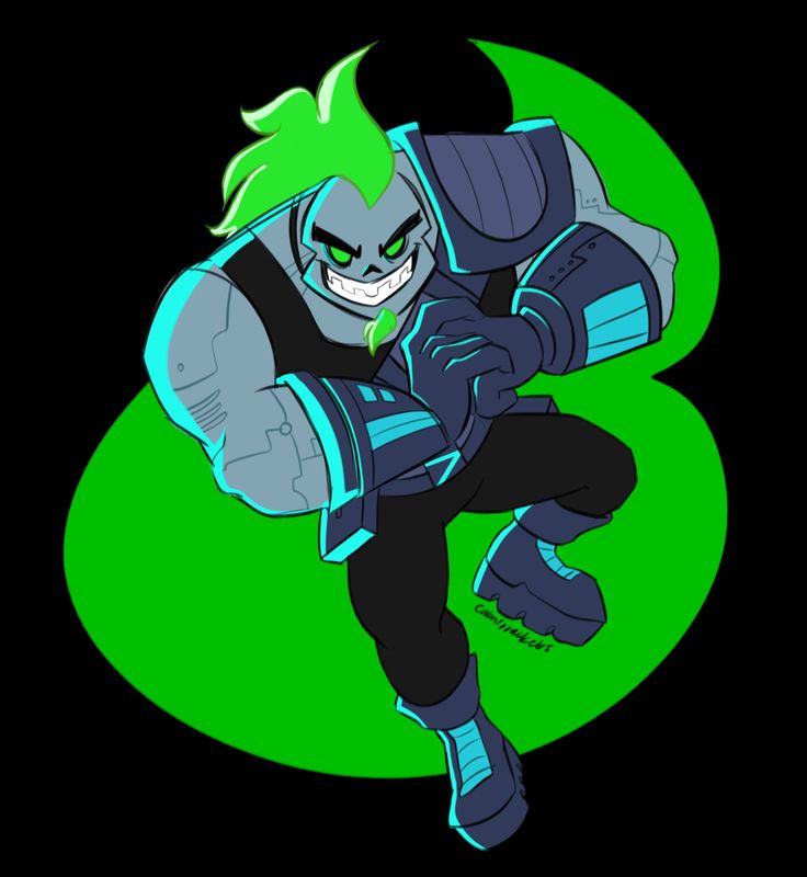 มือใหญ่ข้างนึงปิดหน้าเขาไว้ ทำให้เขาเงียบ เขาถูกผีที่มีดวงตาสีเขียวไฟฟ้า ผมสีเขียวเพลิง เคราแพะ และฟันแหลมคมจับตัวไว้ห่างๆ ผิวสีขาวนวลของเขามีรอยต่อโลหะ และเขาสวมเสื้อกล้ามสีดำ กางเกง เกราะไหล่สีเทาเข้ม และเข็มขัดสีเทาเข้มคาดอยู่ที่หน้าอก