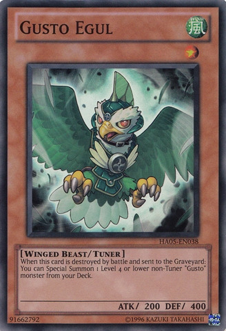 "การ์ดที่ฉันเพิ่งทิ้งลงสุสานคือ Gusto Griffin (กัสโตกริฟฟิน)! เมื่อการ์ดใบนี้ถูกทิ้งจากมือลงสุสาน ฉันสามารถเรียกมอนสเตอร์ที่มีชื่อ 'กัสโต' จากเด็คของฉันออกมาได้! สามารถนี้ของกัสโตกริฟฟินสามารถใช้ได้เพียงครั้งเดียวต่อเทิร์น และฉันขอเรียก Gusto Eagle (เหยี่ยวกัสโต) ออกมา!"