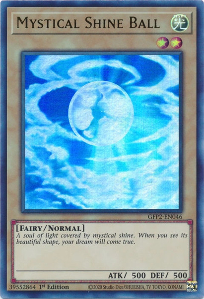 "การ์ดใบนี้ทำให้ฉันสามารถจ่าย ไลฟ์พอยส์ 500 ในช่วงสแตนบายเฟส เพื่อเรียก Mystic Shine Ball (โฮลี่ไชน์บอล) 1 ใบ จากเด็คออกมาได้! ฉันขอจ่าย ไลฟ์พอยส์ 1000 เพื่อเรียก โฮลี่ไชน์บอล 2 ตัวจากเด็ค!" ยูเฟิงโบกมือ และไลฟ์พอยส์ของเขาก็ลดลงอย่างรวดเร็วจนเหลือ 4600 พอยส์