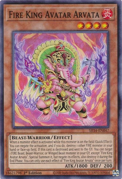 "งั้น ฉันจะเรียกมอนสเตอร์บนมือออกมาแบบปกติ Fire King Avatar Arvata (ราชาเพลิงอวาต้า)!" ยูเคอวางการ์ดลงบนดูเอลดิสก์ของเขา และทันทีนั้นเอง ร่างของมอนสเตอร์ที่คล้ายมนุษย์มีมีหัวเป็นช้างก็ปรากฏขึ้นบนสนาม
